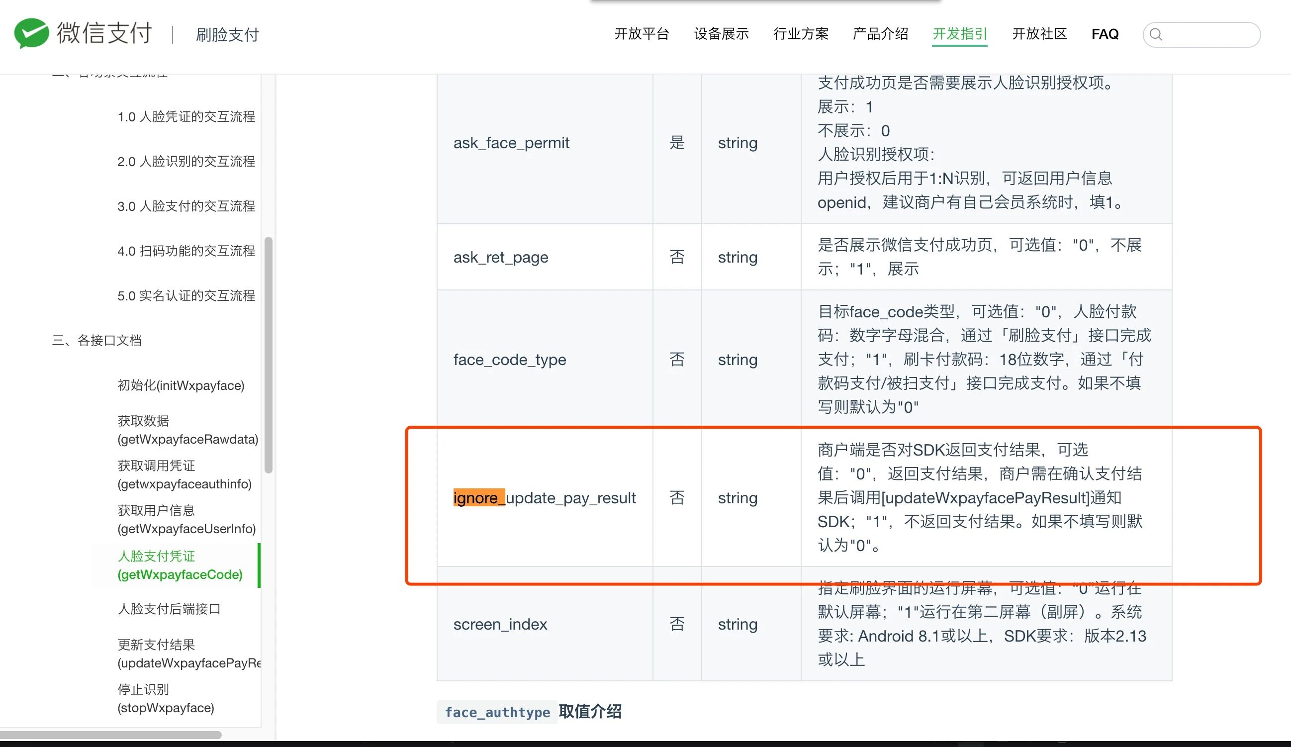 文档中:更新支付结果(updateWxpayfacePayResult)