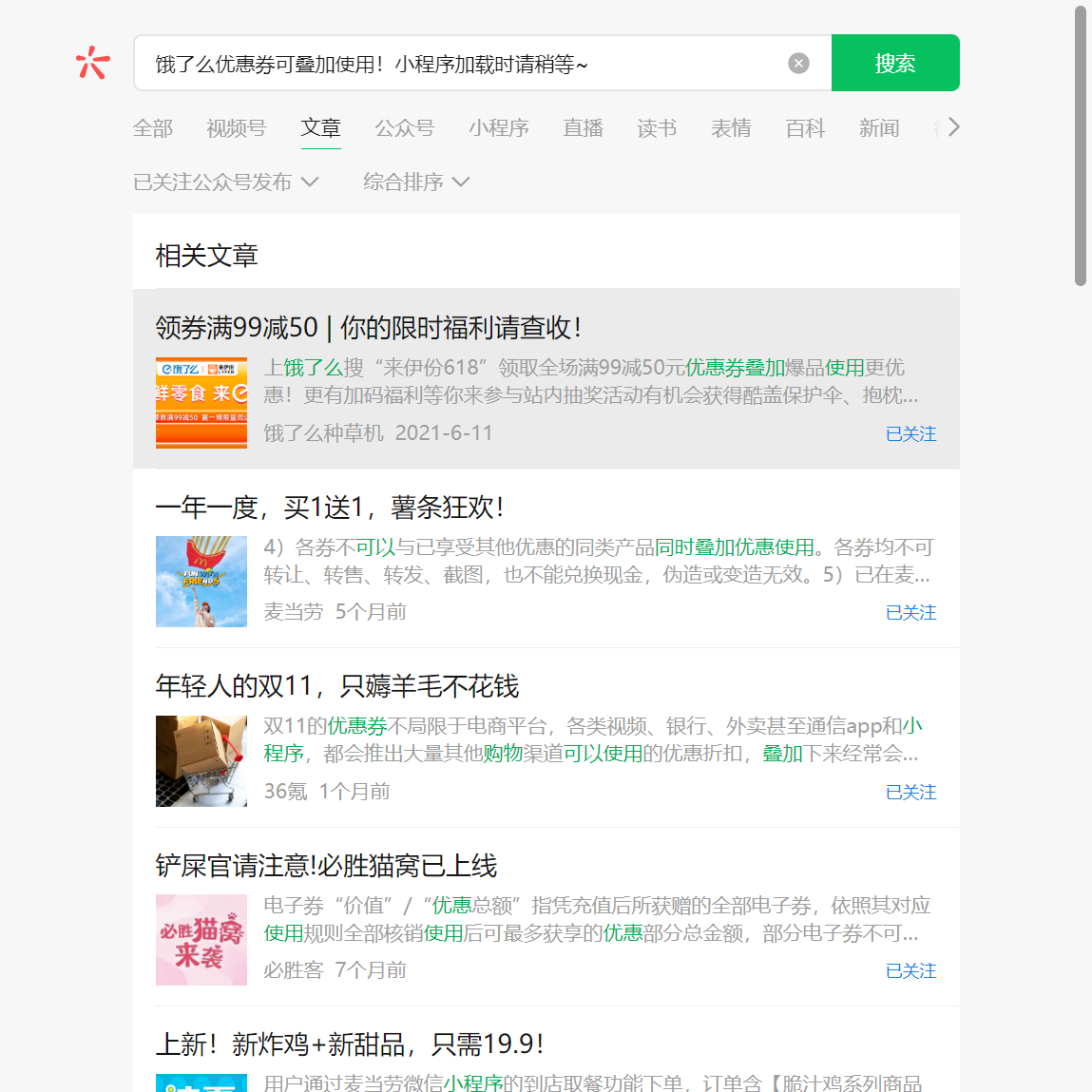 反馈具体问题:文章无法被搜索到,选择已关注的公众号进行文章搜索依然无法搜索到。
