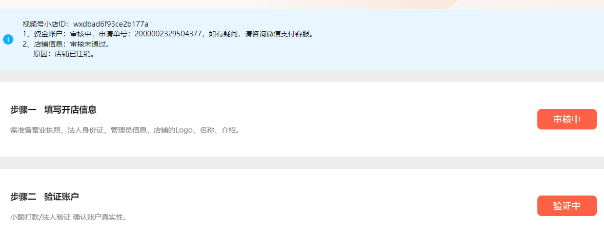 视频号小店开店审核不通过,又显示审核中?注销问题重复出现,但是又没有地方说重新申请,只给提供修改资料,修改了,又说店铺注销?