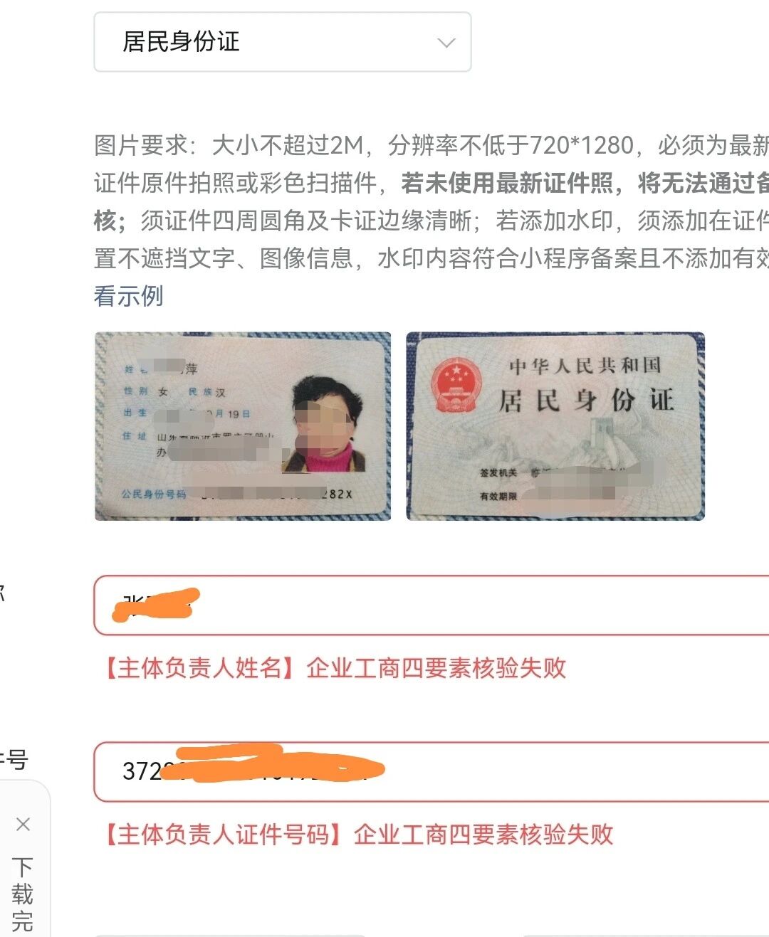 主体信息对比后全部一致,一直显示企业工商四要素核验失败,比较着急,希望官方可以给予回复,感谢!我的小程序号:gh_2f020d0e2085