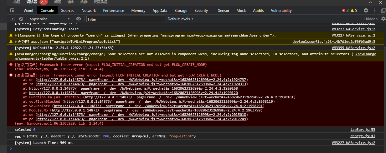 微信开发工具调试的时候,有时候调试器界面会报这个错