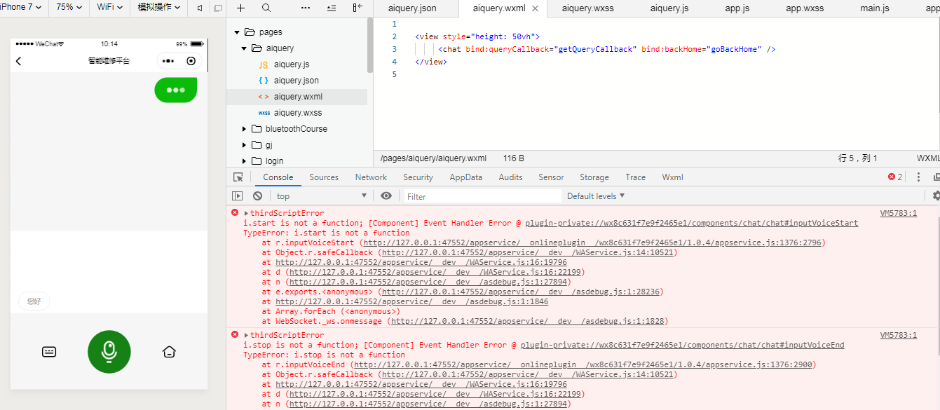 1、进入时报错:VM5783:1 Some selectors are not allowed in component wxss, including tag name selectors, ID selectors, and attribute selectors.(./components/chat/chat.wxss:176:1)