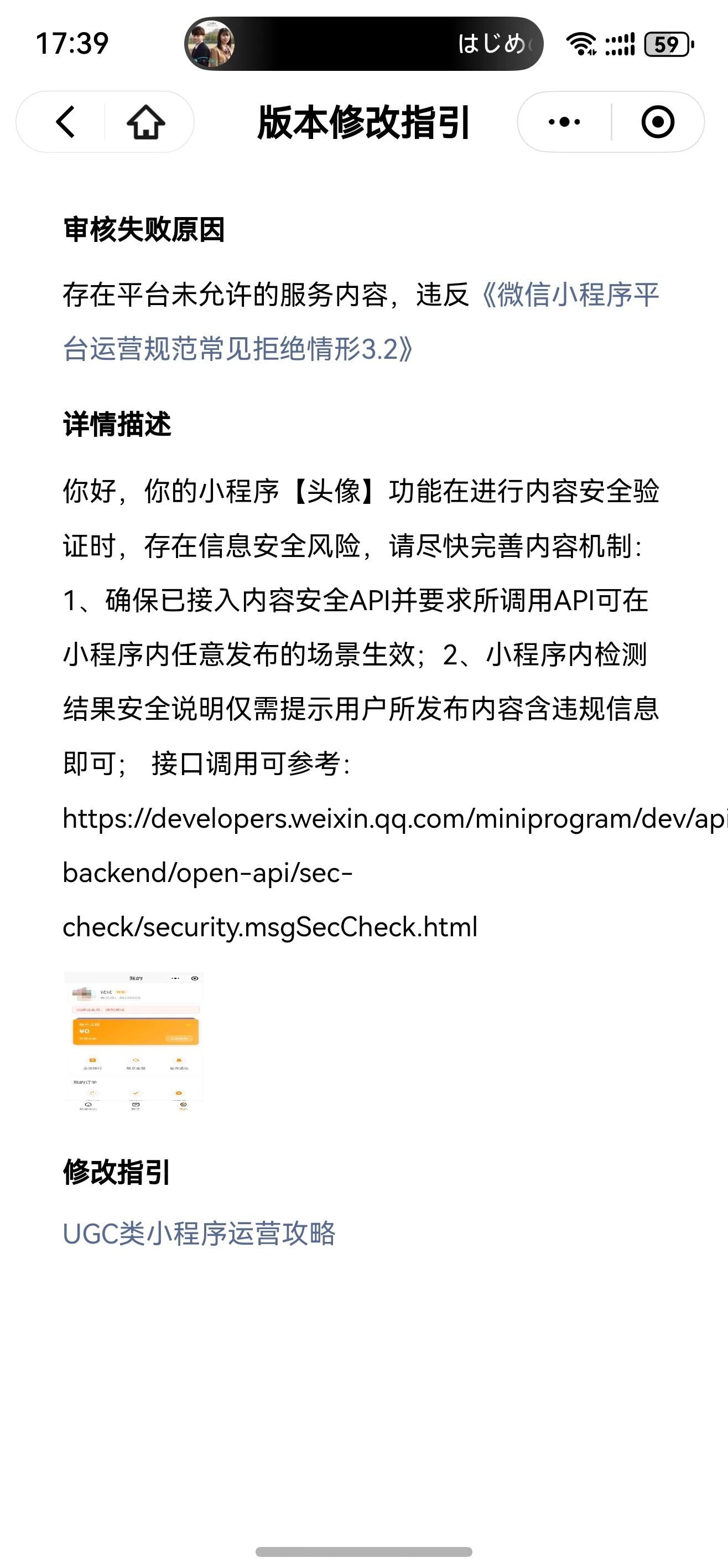 机器自动检测的,你的代码里有图片上传功能,但是没有调用内容安检的代码。