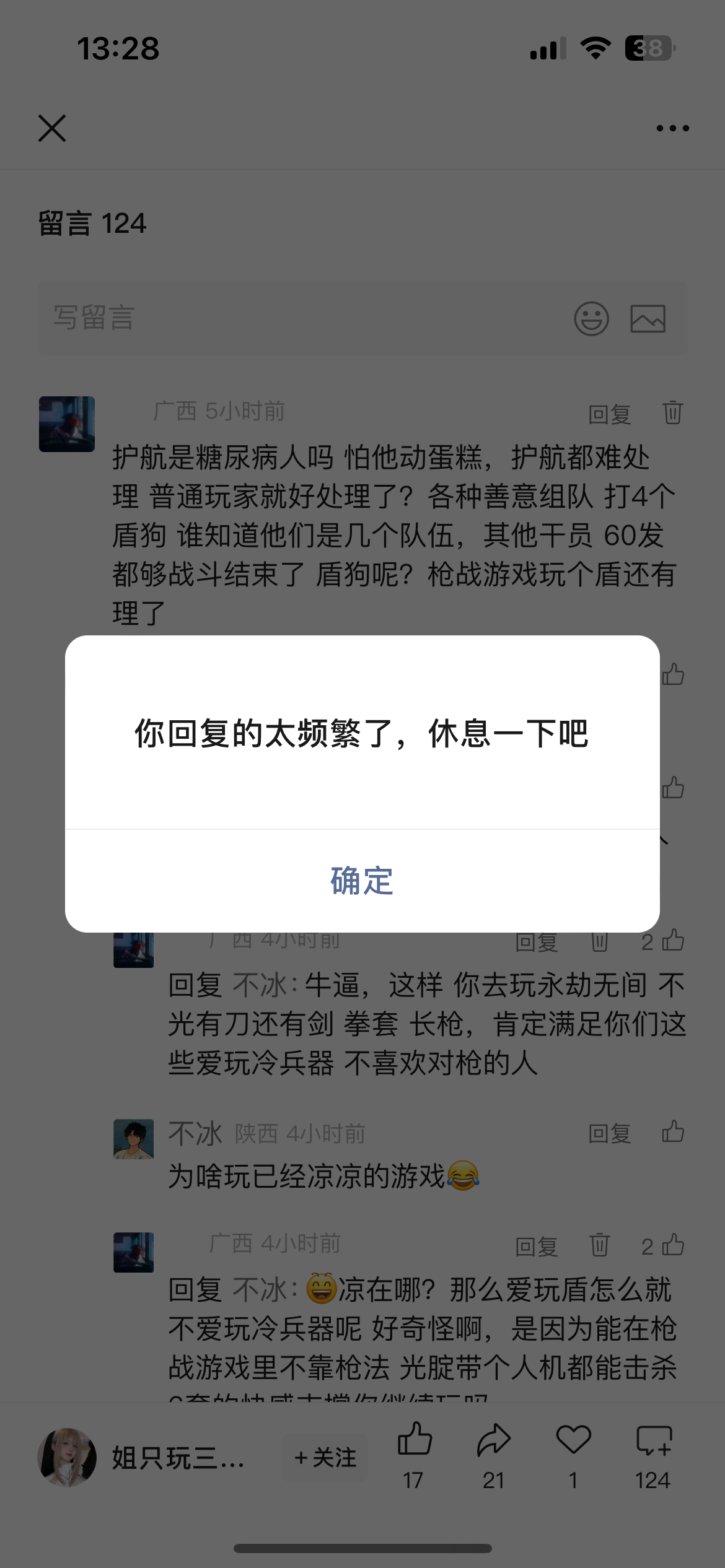 一回复就提示你回复的太频繁了休息一下吧。而且最开始的赞也不显示了