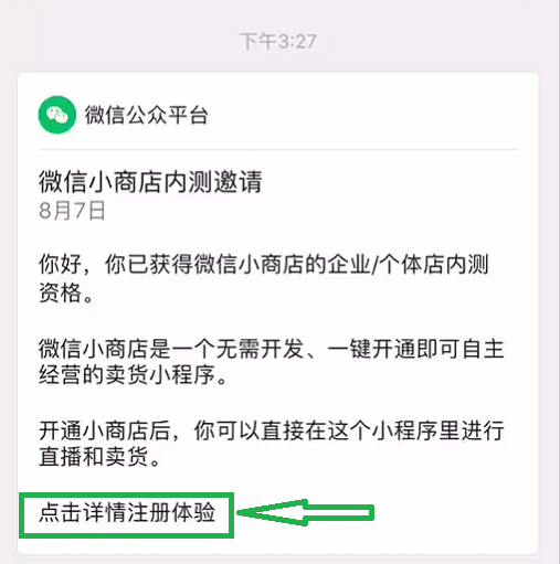 收到微个小商店内测邀请,却没有链接点进去开通?如下图所示: