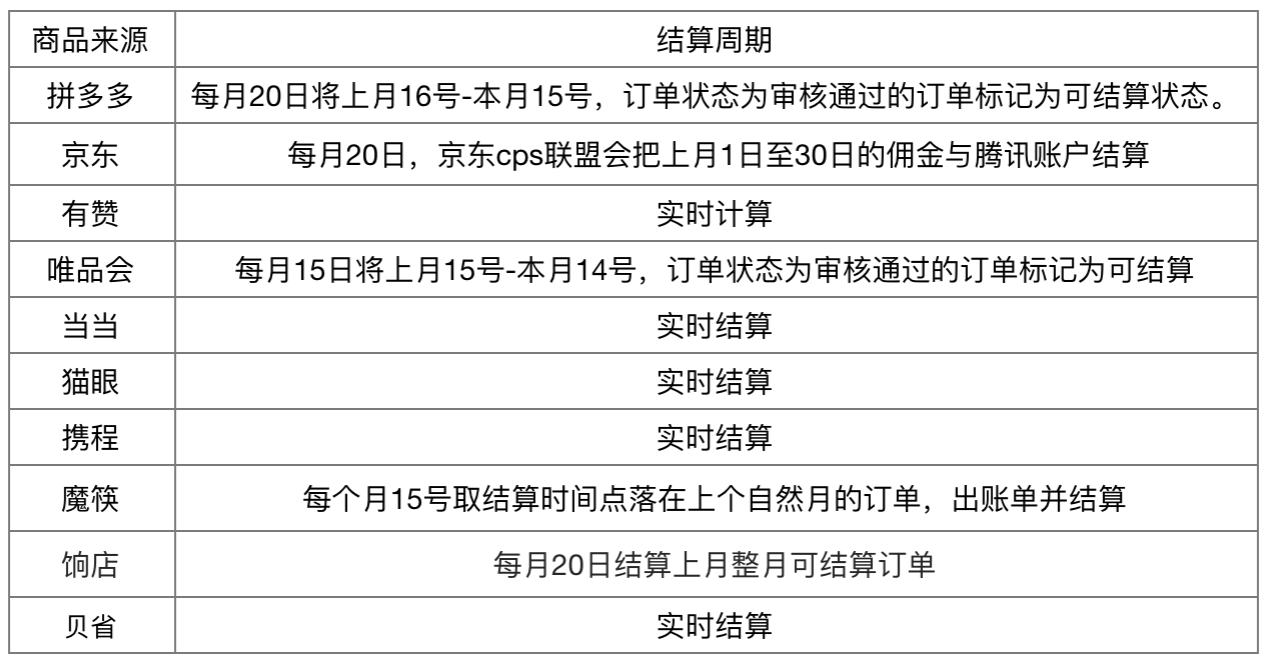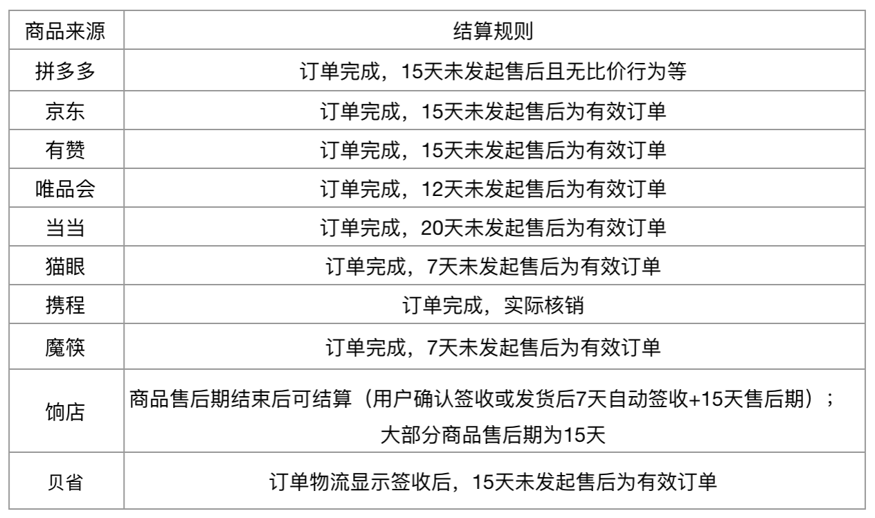 6)不同平台对于部分用户购买是没有佣金,详细见下: