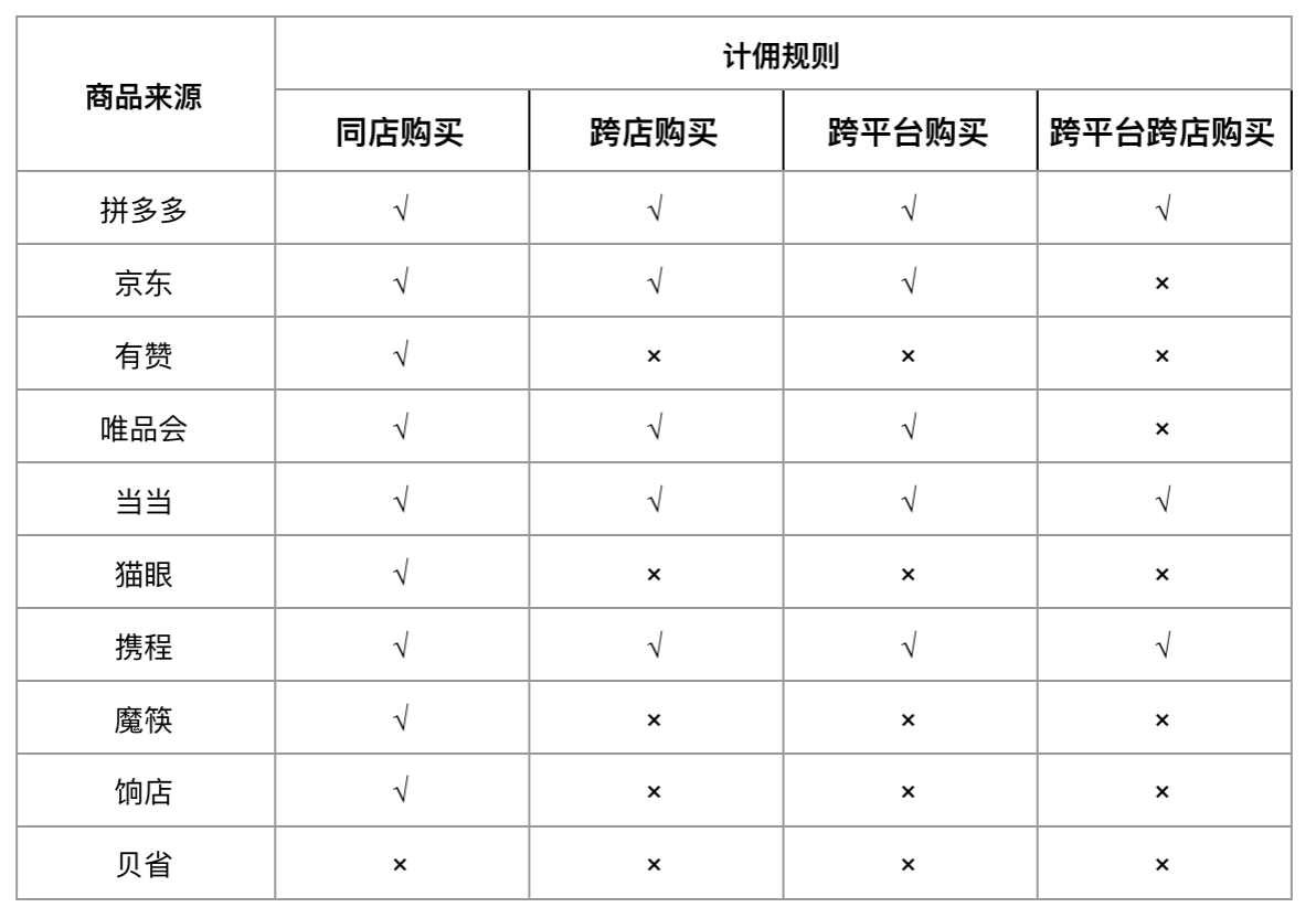 拼多多:比价订单购买无佣金(用户在拼多多搜索点击过该商品,再来小商店购买)。