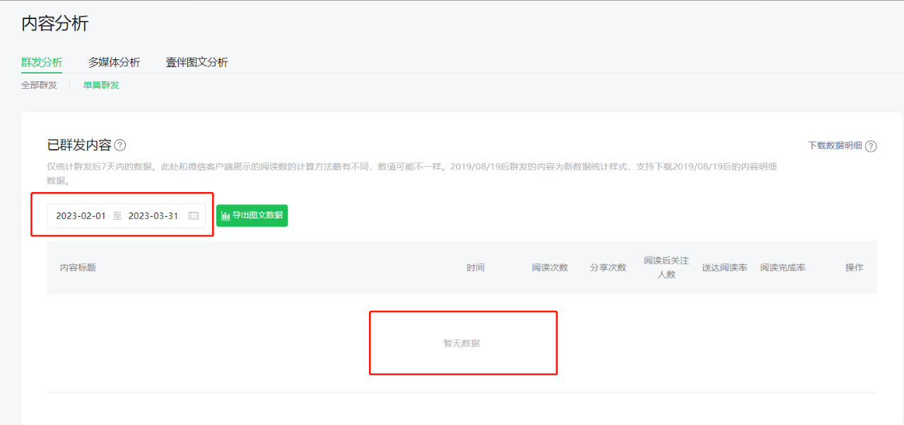 公众号迁移后,【内容分析】为什么不显示迁移前发表的内容数据(但在发表记录里可以看到文章)?