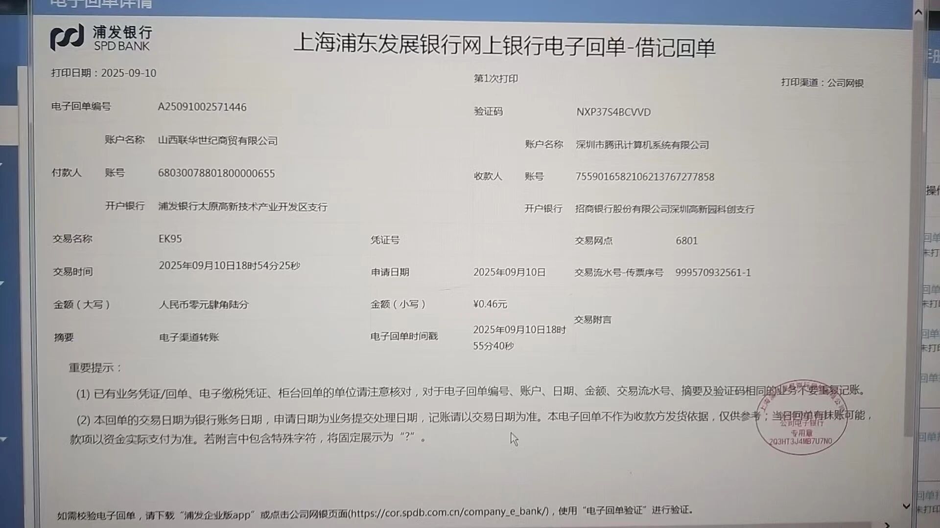 核对了打款信息一样