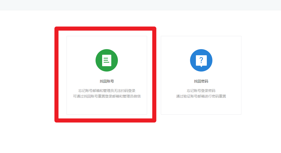 实在不行,那就只能通过找回账号的方式重置登录邮箱和管理员信息了。