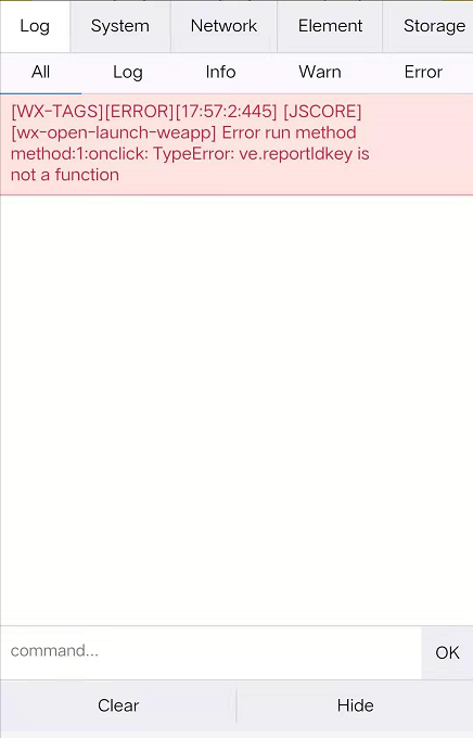 wx-open-launch-weapp标签点击报错,通过vconsole看到下面的错误,点击没有响应。
