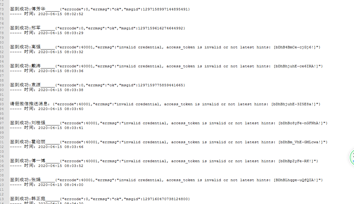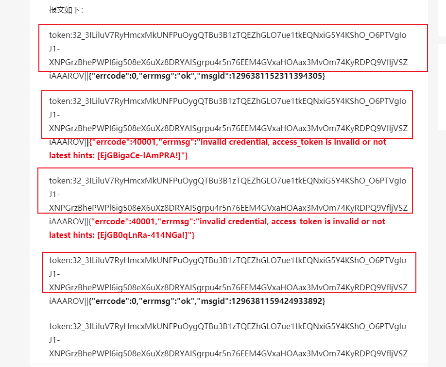我用for循环写了个循环调用发送微信公众号模板功能做为测试。经过测试经常出现{"errcode":40001,"errmsg":"invalid credential, access_token is invalid or not latest hints: [EjGBigaCe-lAmPRA!]"} 的问题。