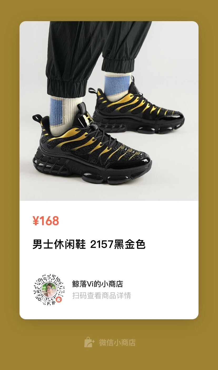 群友专享💛打折了🎊群友福利单!💦 ———— 男士休闲鞋 2157黑金色 开抢啦:168元,比市场价优惠1131元https://mmbizurl.cn/s/Ehh8vPL7a