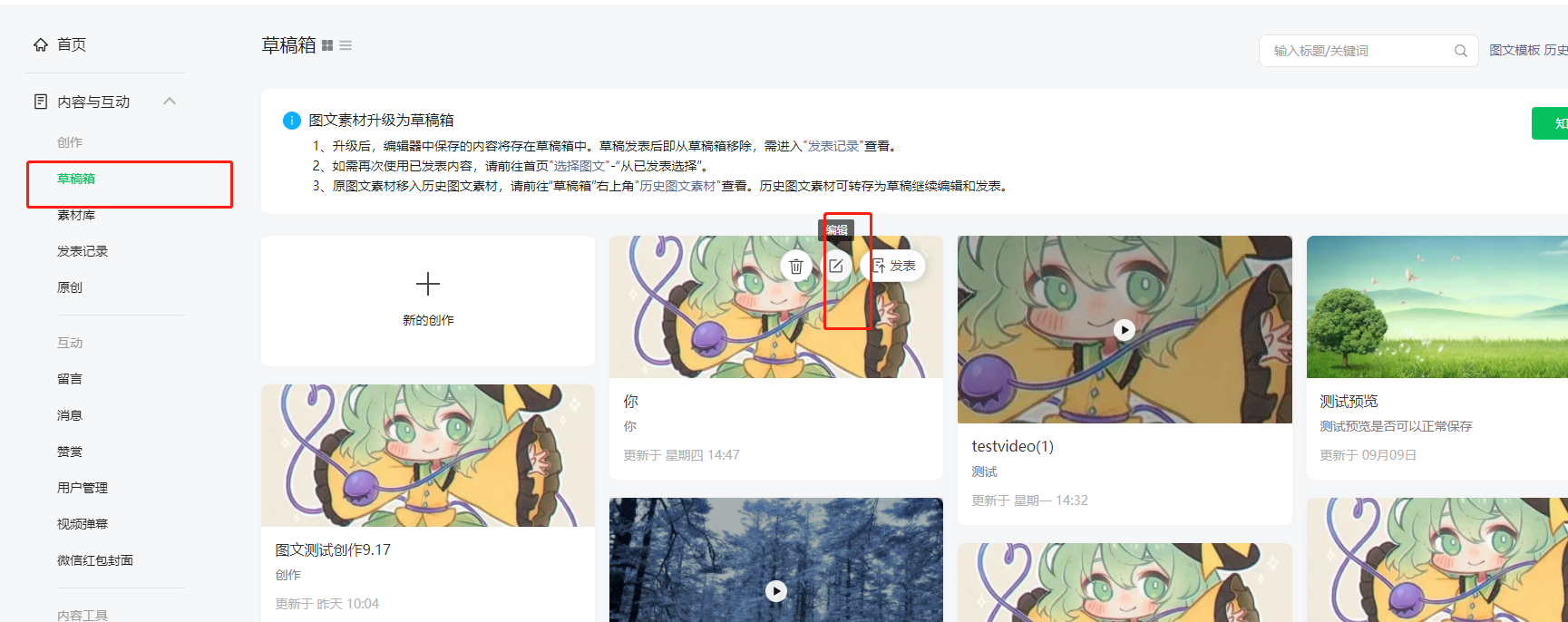 或者直接进入草稿箱中,也可以直接点击草稿进行编辑的