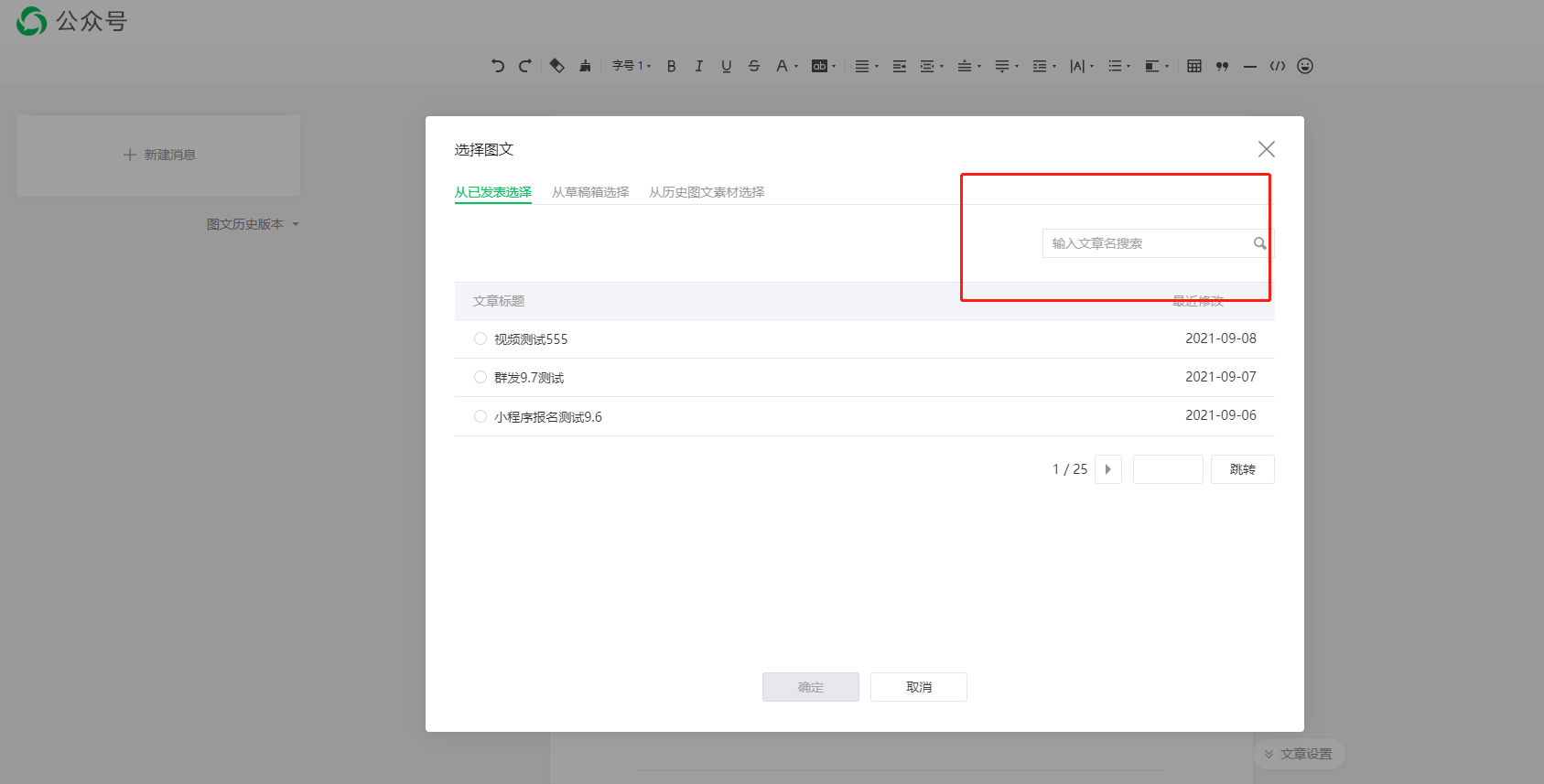 一个个修改指的是图文里面的文章,例如我发布一次,文章有5条。今天的发布之后,明天草稿就没有了,我就要重新编辑这五条文章。我文章里面的格式例如标题,表尾是固定的。以前我直接修改内容就可以了。现在就要点击模板,在编辑内容。每次的预览配图我之前一般都是复用,现在也要重复选图才可以。太麻烦了。