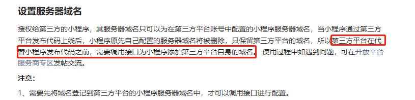 在代替小程序发布代码前,需要调用接口为小程序设置服务器域名哦