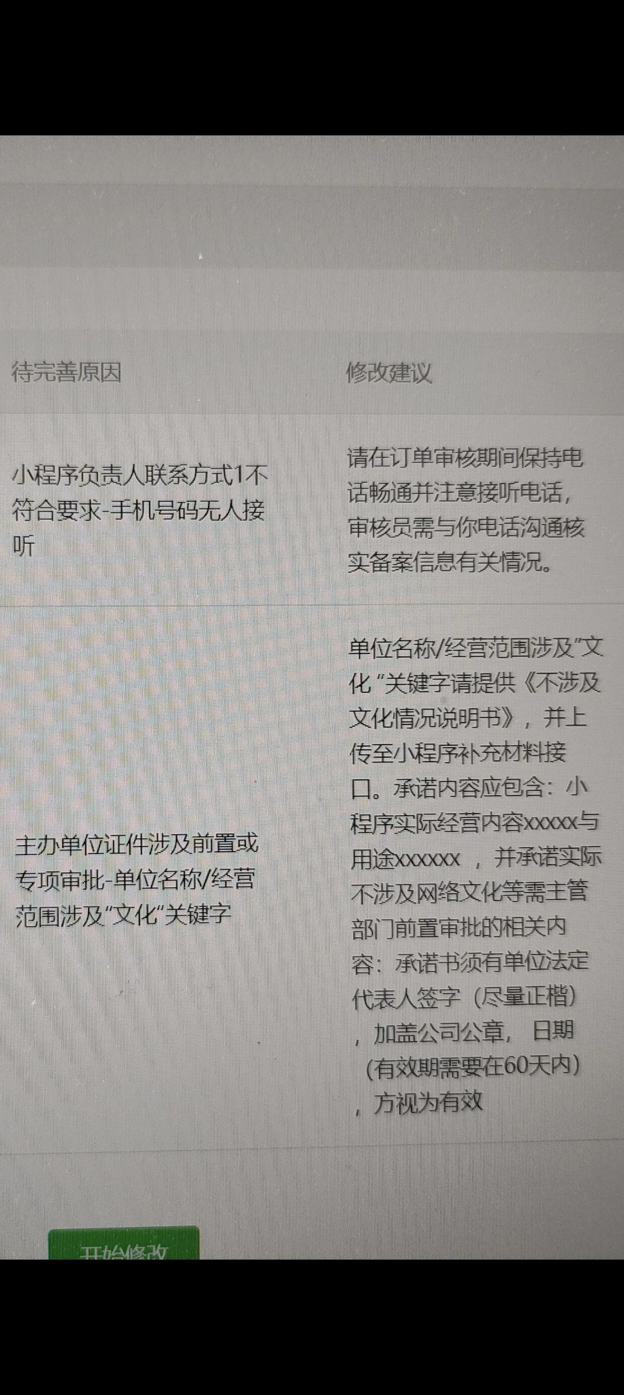 您好,小程序备案审核不通过,因为公司名称带有文化两个字,需要写一个不涉及文化情况说明书,请问怎么写,我们腾讯有没有模板