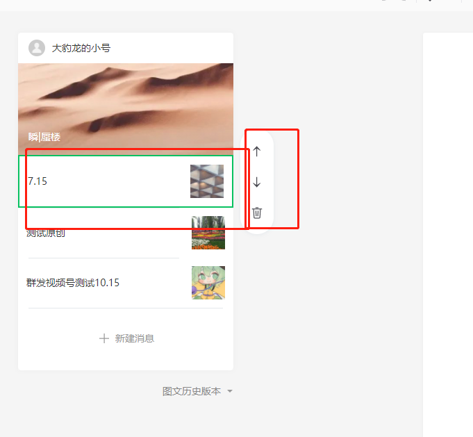 之前公众号没改版前,有个箭头可以直接调整推文发布的三四篇文章的顺序,直接用那个按键顺序可以直接换,怎么现在想把第三篇文章放到一条的位置,怎么都找不到调整顺序的按钮了,是在没办法又重新做一遍,请大家指导