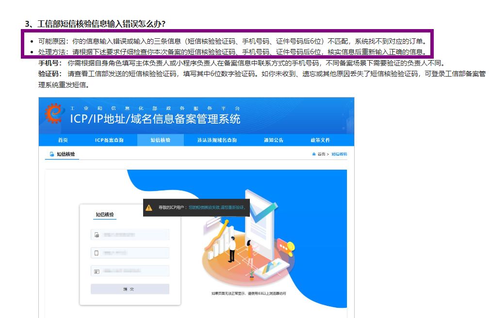 昨晚7点收到的短信,今天上午进行的验证,提示尊敬的ICP用户: 您的短信核验失败,请联系接入商查询核验结果