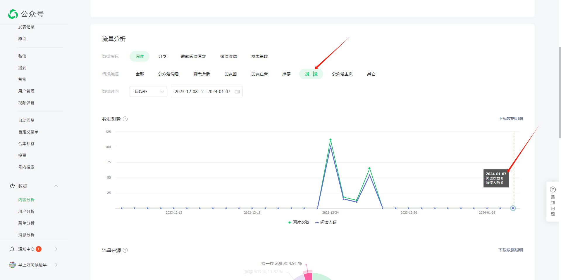 建议公众号运营者可以继续加强公众号运营,提高文章质量,例如结合用户实际需求,创作更加全面、案例丰富的优质文章,以及使用原创标签等运营能力。优质的文章会逐步被搜一搜索引和召回。