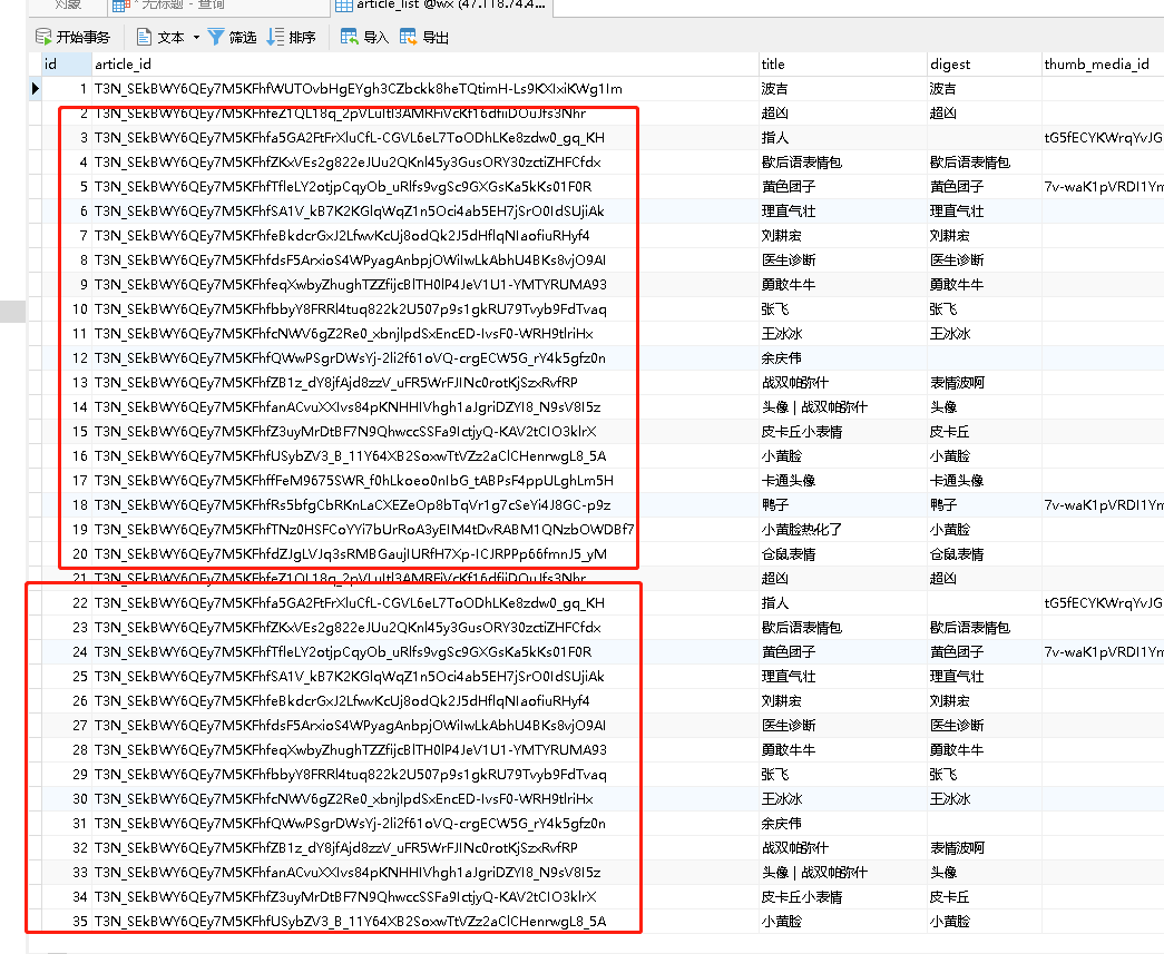 调取接口:https://developers.weixin.qq.com/doc/offiaccount/Publish/Get_publication_records.html。接口响应数据总记录数有644多条,但是轮询分页查出来,文章id不同的文章只有51。查询的内容大量重复,请问什么原因呢?