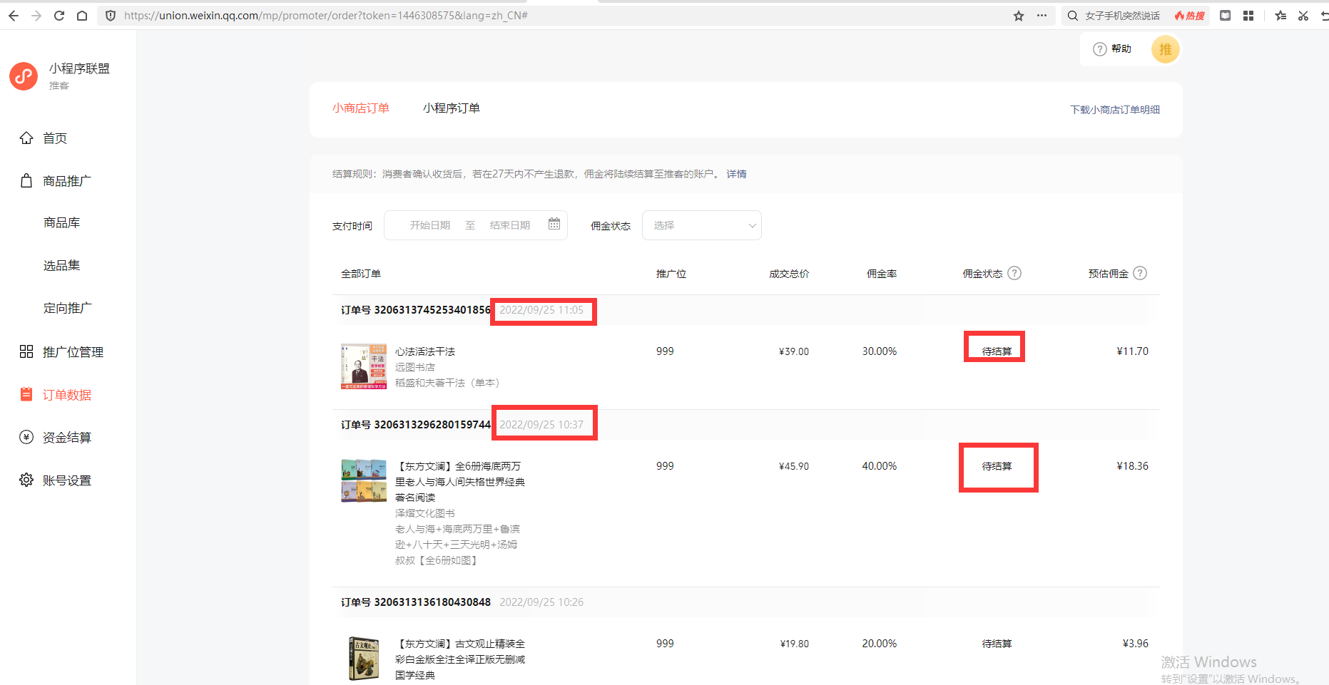 2022年9月份的订单,订单已经一年了,还显示待结算,用小程序带的货一分都没到账,去哪里找,希望平台给处理解决一下