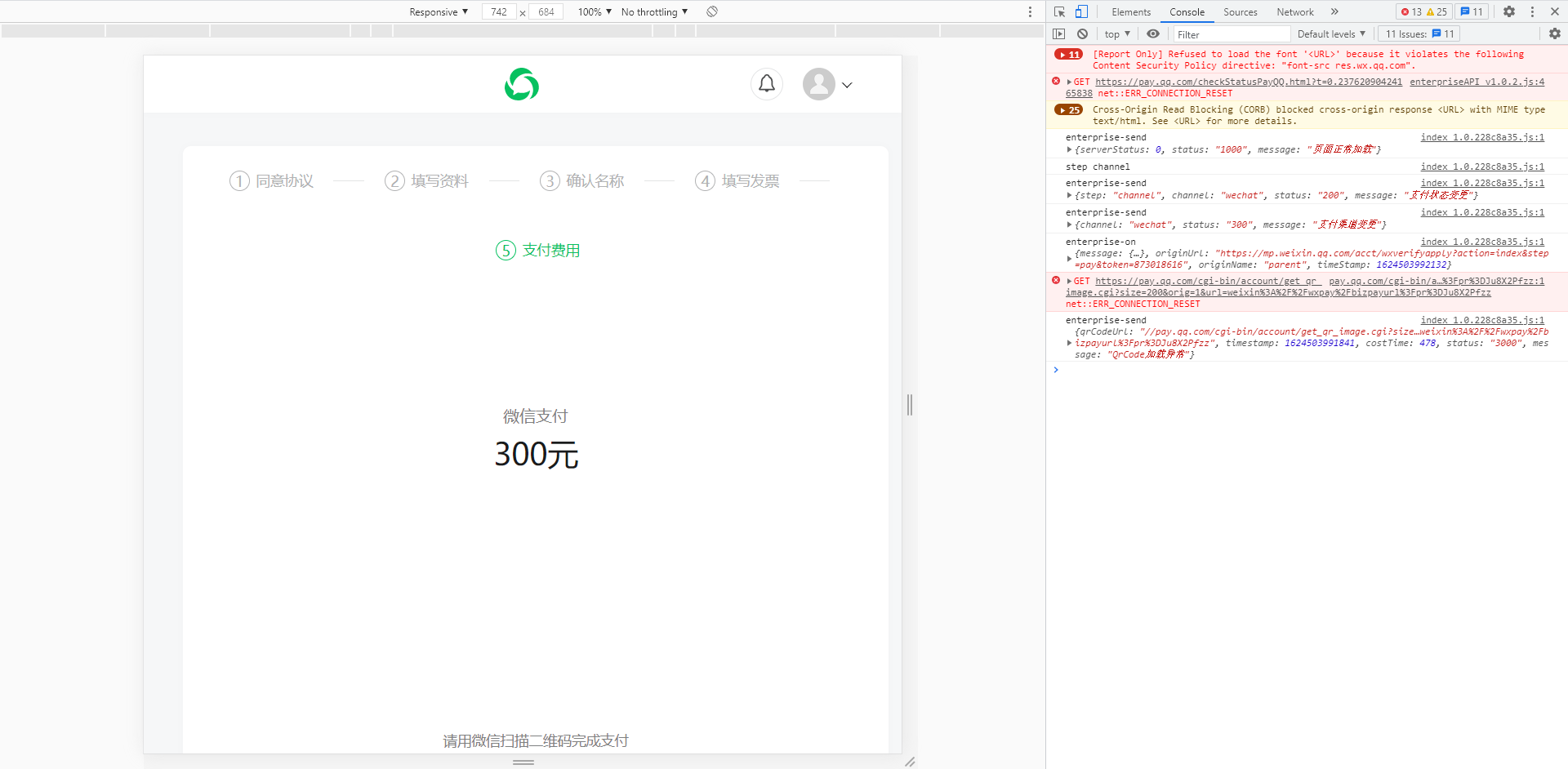微信公众号申请微信认证,最后一步支付300元的时候二维码加载不出来?