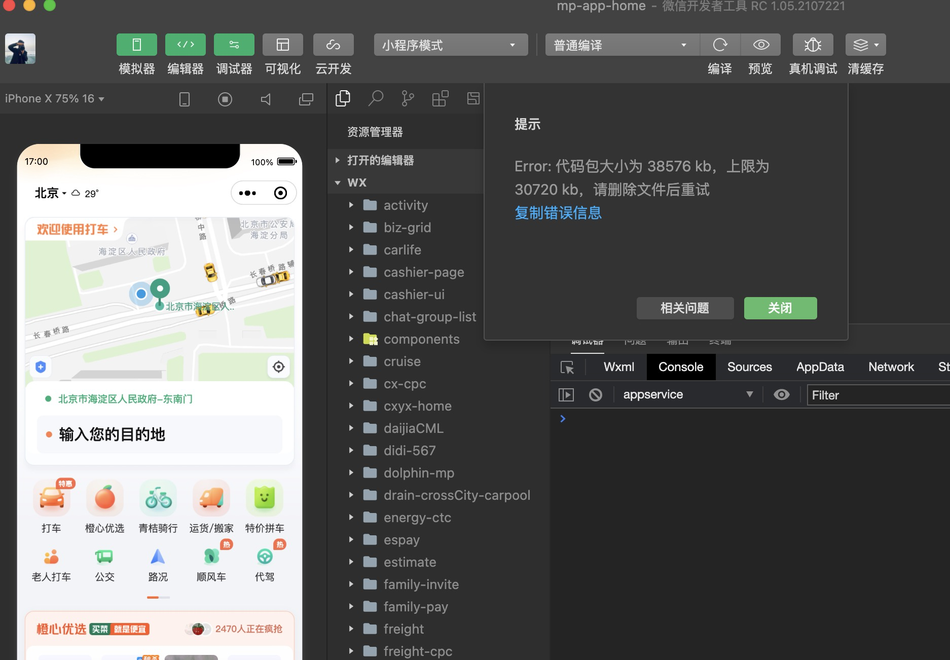 另外后台统计的代码包大小(限制大小的标准),还需要包含插件的大小。