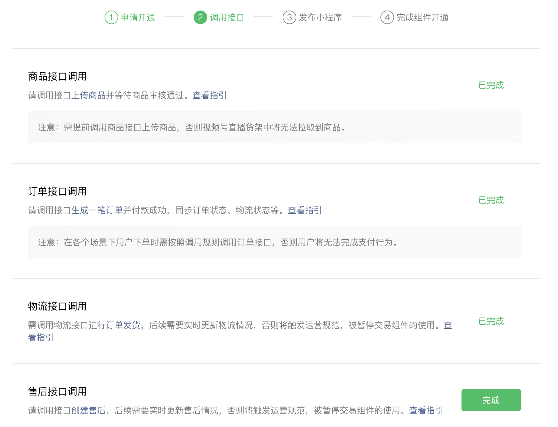 视频号开通自定义组件的售后接口完成提示“检测到你未完成此项步骤,请确认后重试”