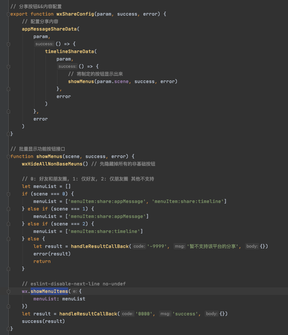 目前所有隐藏按钮都取消,所有功能正常展示,也没有分享微信和分享朋友圈两个按钮