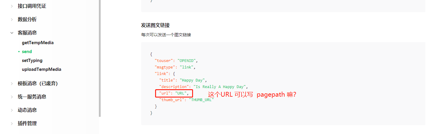 具體參考小程序客服信息api,其中一個接口是可以發送path的。