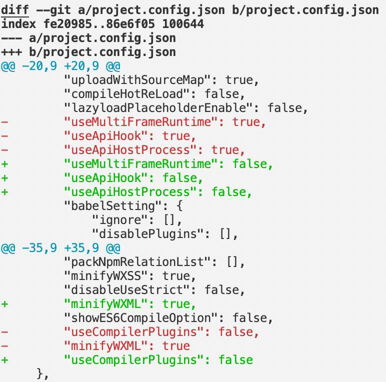 你是否点开过开发者工具里面的项目配置。点开后会自动保存,然后会修改一些配置文件。原来旧版本的json没有的配置项,会写进去默认配置值。