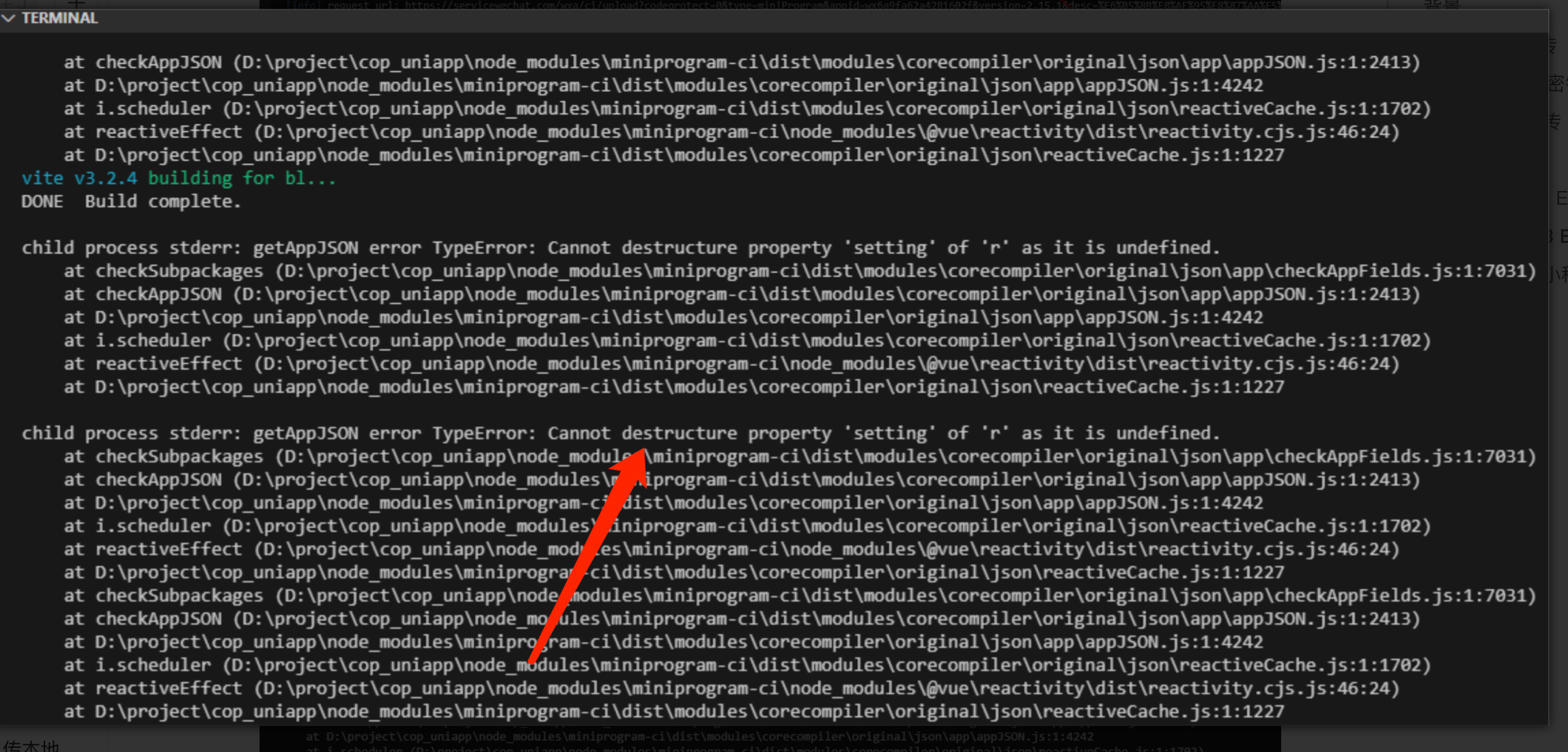 就会报错child process stderr: getAppJSON error TypeError: Cannot destructure property 'setting' of 'r' as it is undefined.