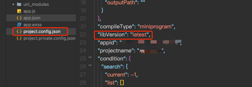 打开 project.config.json 文件,找到 libVersoin 字段,填写 latest 、trial 、widelyUsed 任意一个即可。