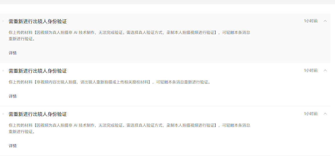关于审核,视频号打压AI生成内容,打压二次创作(影视剪辑),动不动就让你搞出镜人验证。验证不了?等着限流禁言禁止私信吧!验证不说吧,验证流程极其繁琐,有的甚至无法进行,陷入死胡同。