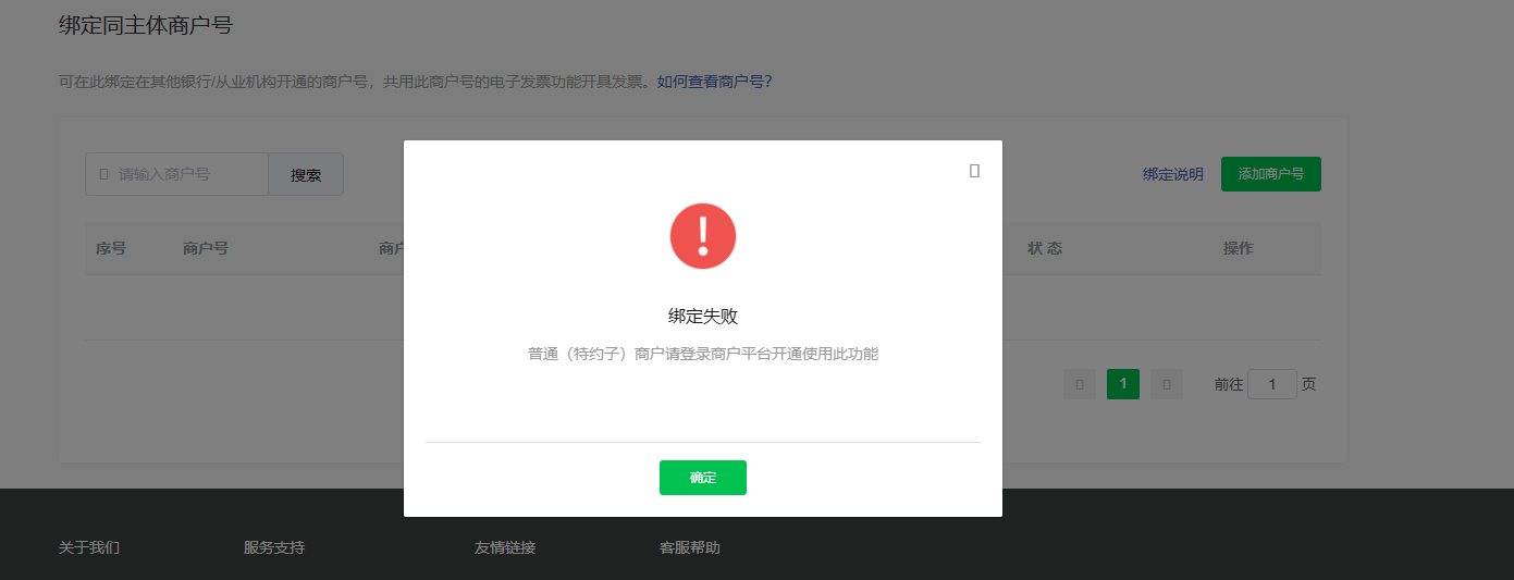 这里让你绑定其他银行或者机构开通的商户号,不支持绑定直连商户号