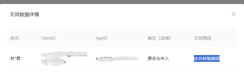 你是后台添加 还是接口添加?删除下重新获取openid添加再试下。
