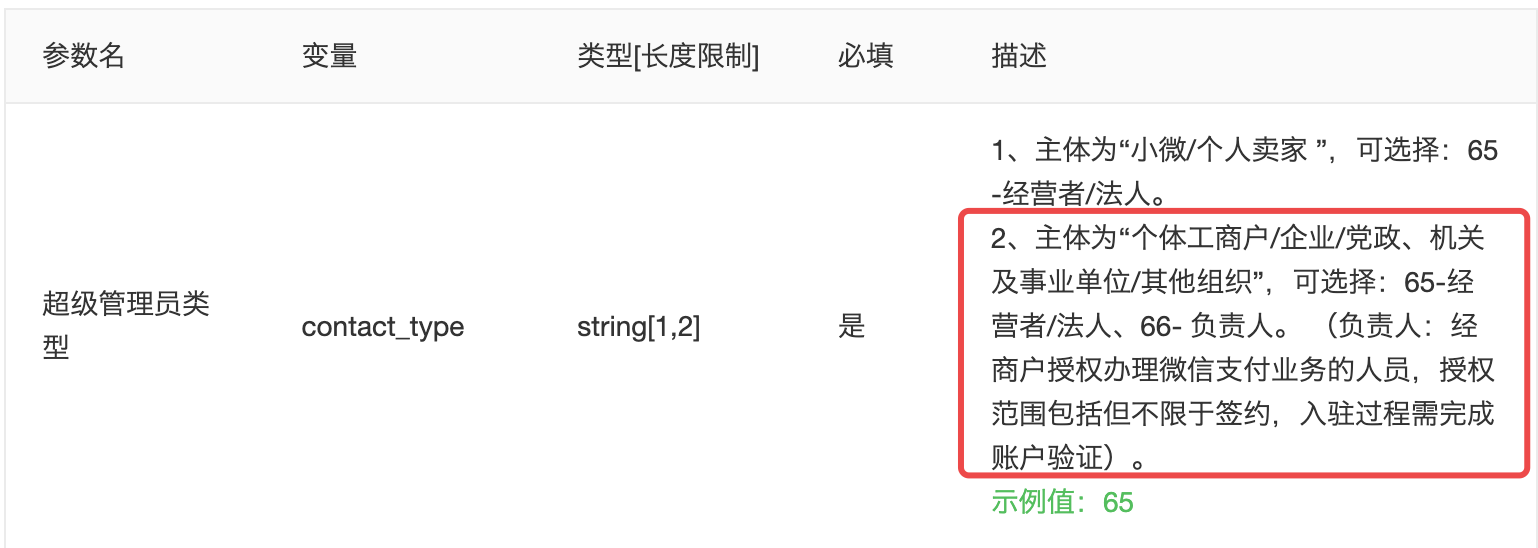 主体类型我写的是:2500个人卖家(小微类型是:2401),超级管理员contact_info类型:66负责人