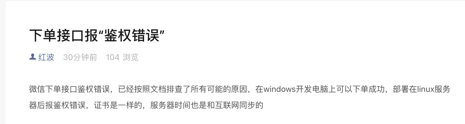 微信下单接口鉴权错误,已经按照文档排查了所有可能的原因,在windows开发电脑上可以下单成功,部署在linux服务器后报鉴权错误,证书是一样的,服务器时间也是和互联网同步的