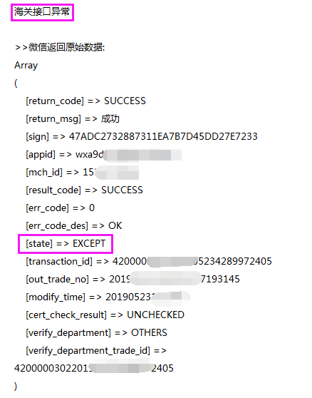 微信上报支付单提示海关接口异常
