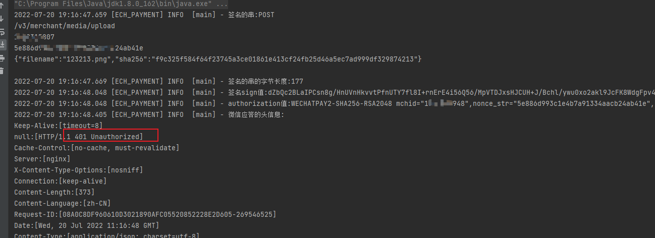 特约商户进件,上传图片提示401Unauthorized是怎么回事,按照官方文档接入的