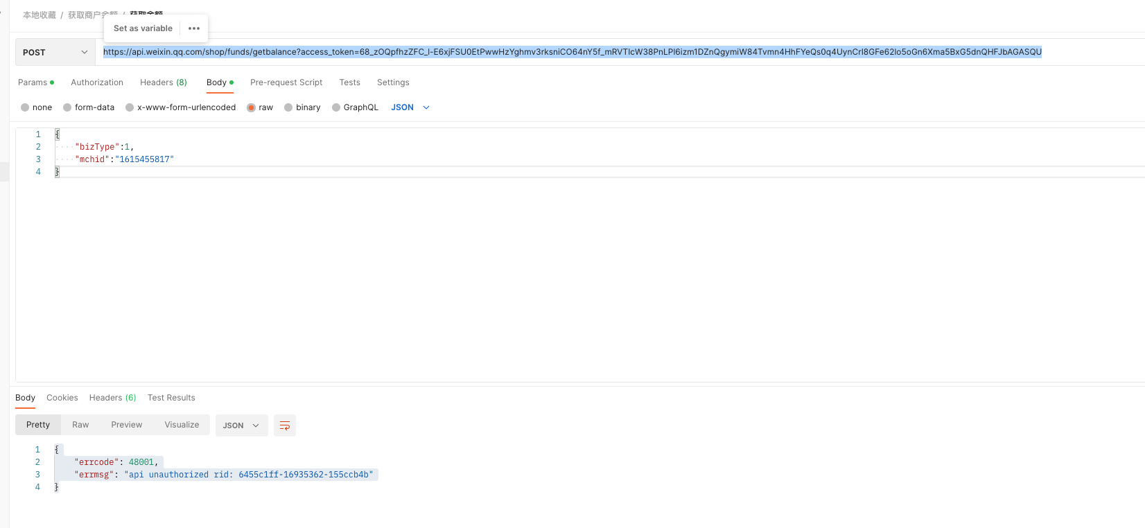 查询微信商户平台余额提示错误48001,如何开通权限,小程序appid:wxd920f91828a6b665,求解答,谢谢!