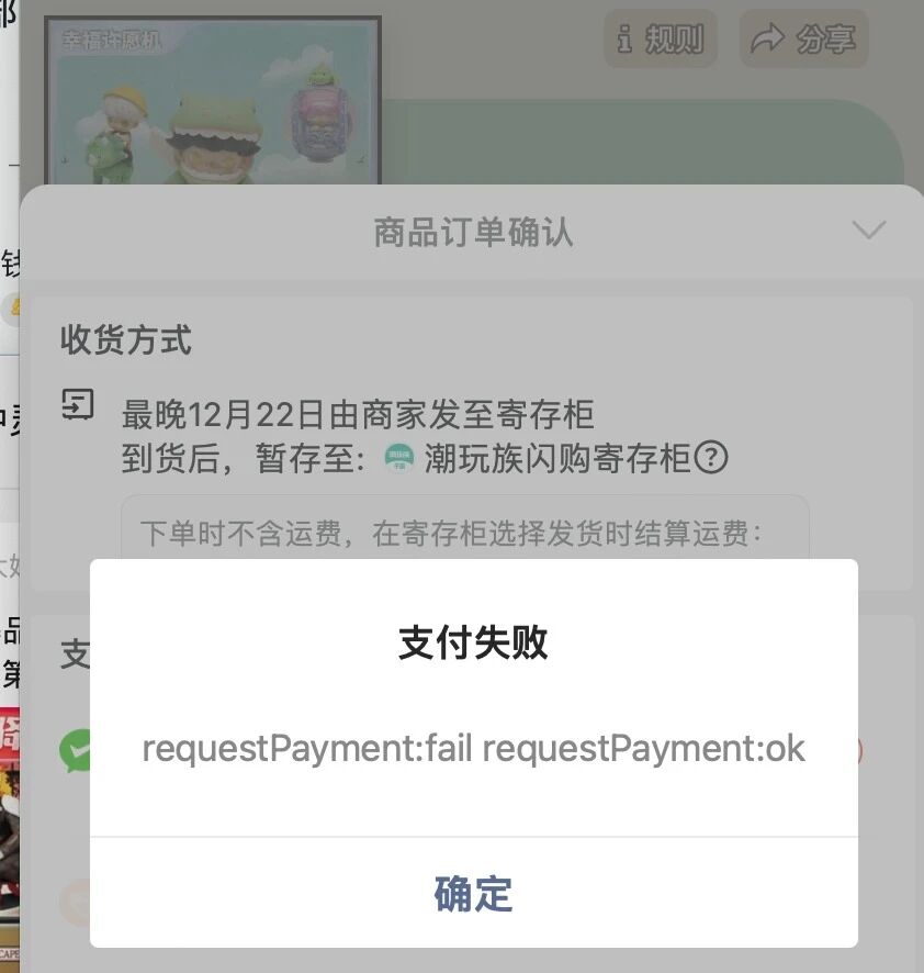 如图所示,手机扫二维码支付成功后,调用了 `fail` 回调函数,`errMsg` 为 `requestPayment:fail requestPayment:ok`