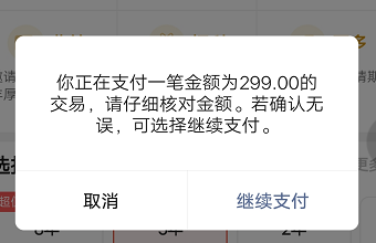 这个提示点击继续支付即可,这是一个内部的校验。这个是之前官方对于同样问题的回复