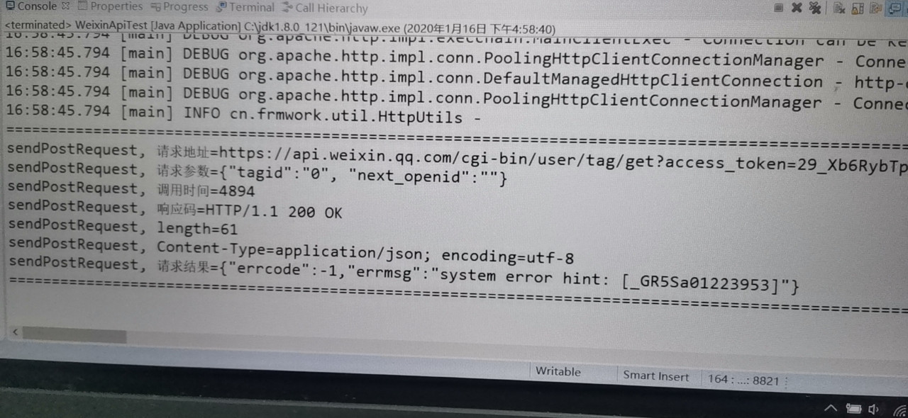 sendPostRequest, 请求地址=https://api.weixin.qq.com/cgi-bin/user/tag/get?access_token=********************************