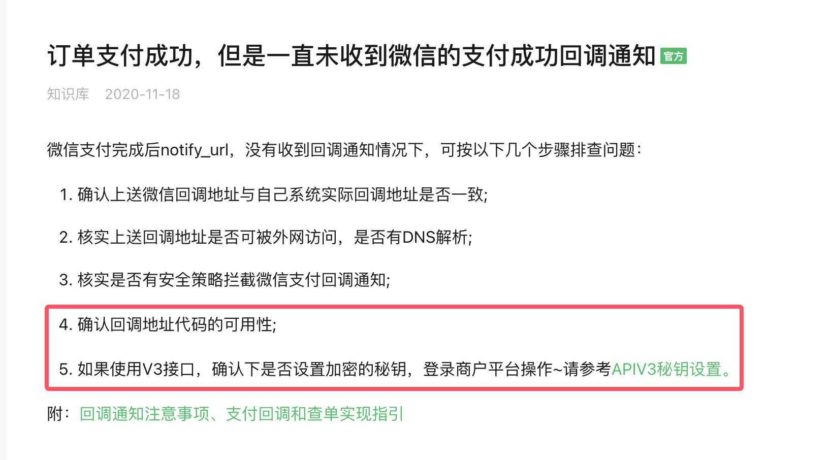 使用的是微信API3接口 业务近期没有做调整 但是出现了掉单的情况,我们业务是依赖支付成功回调的 就是某一些单支付成功后 没收到微信给我们的回调,使用https://pay.weixin.qq.com/wiki/doc/apiv3/apis/chapter3_1_2.shtml这个接口查询订单 又是支付成功的状态。