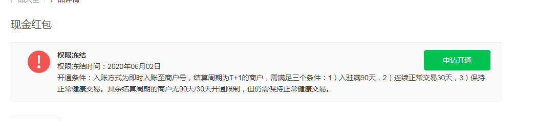想申请开通现金红包,但是显示权限冻结