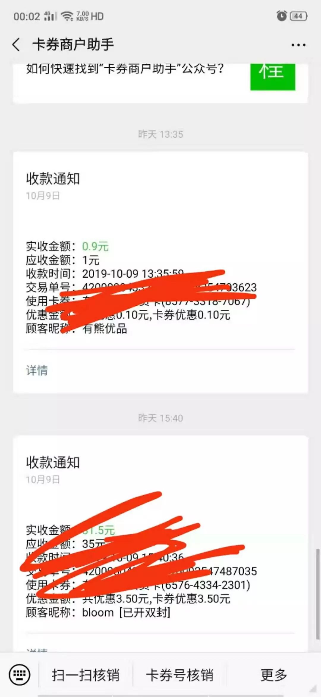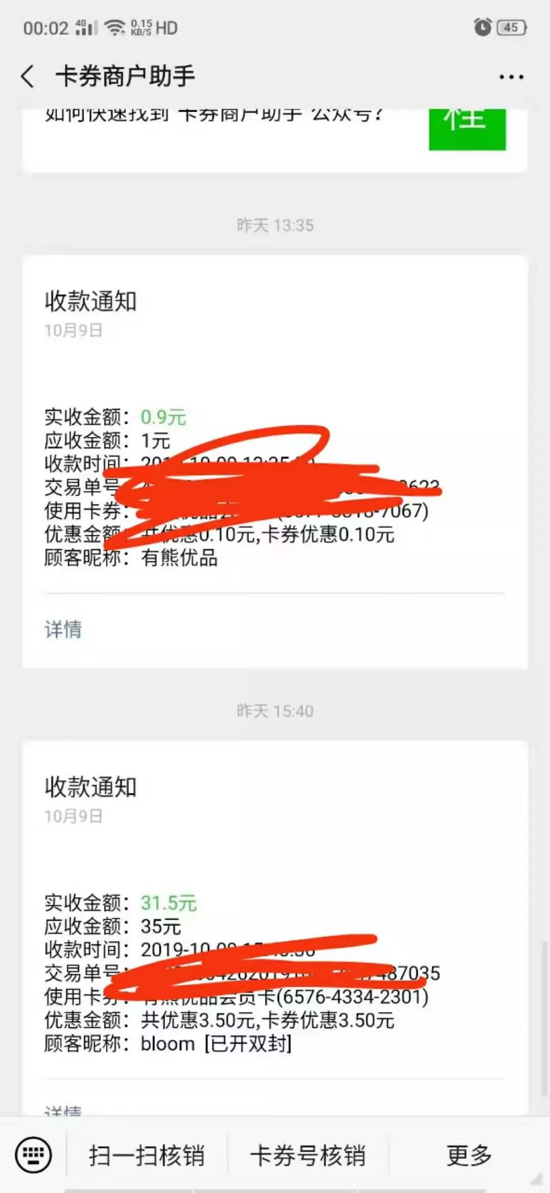 我这边也有这个情况,扫码核销没有用,只能输入核销码核销