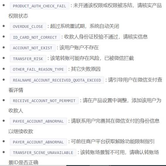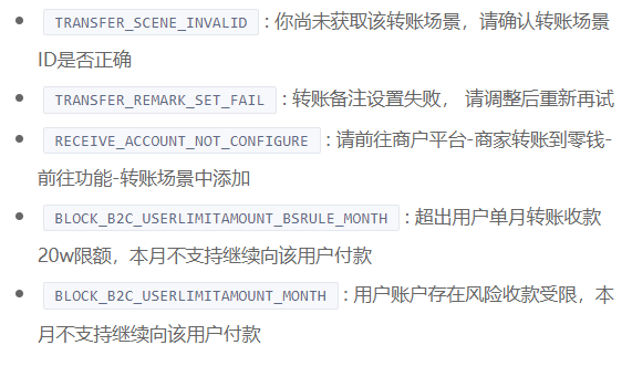 TRANSFER_SCENE_INVALID: 付款确认时,转账场景已不可用,系统做关单处理