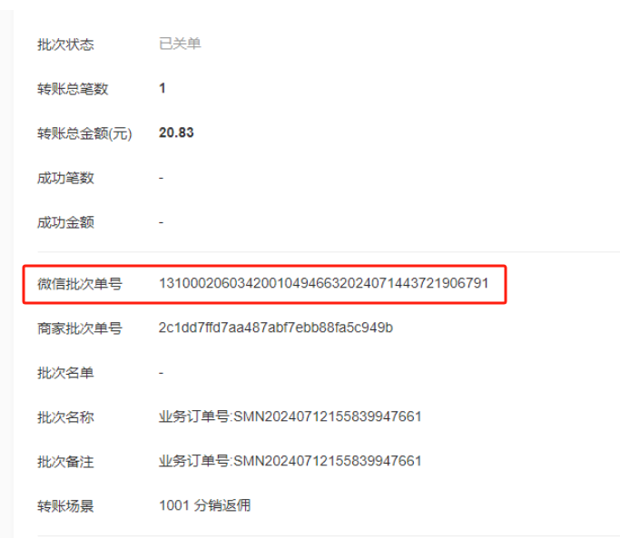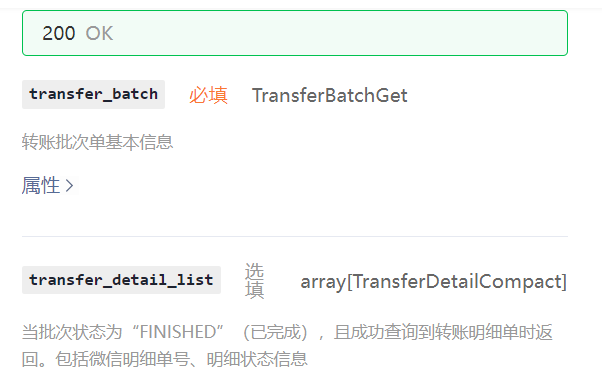 批次状态是已关闭,按照说明,不会返回 transfer_detail_list。